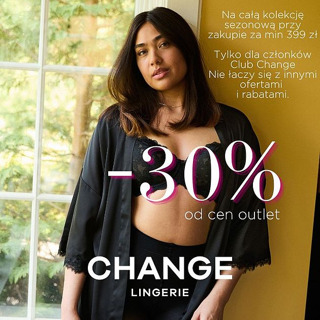 CHANGE Lingerie szanuje naturalne piękno kobiet i projektuje bieliznę w szerokiej palecie rozmiarów. Oferuje aż 88 rozmiarów biustonoszy (miski od A do M i obwody od 60 do 100 cm) oraz profesjonalne, bezpłatne doradztwo w zakresie brafittingu we wszystkich salonach. Filozofią marki jest zapewnienie każdej kobiecie idealnego dopasowania, niezależnie od kształtu sylwetki i noszonego rozmiaru tak, aby to biustonosz pasował do kobiety, a nie kobieta do biustonosza. Poza zmysłową bielizną w portfolio CHANGE Lingerie znajdziemy modne stroje kąpielowe, wygodną bieliznę nocną, praktyczną odzież domową oraz wysokiej jakości artykuły pończosznicze i dodatki.
