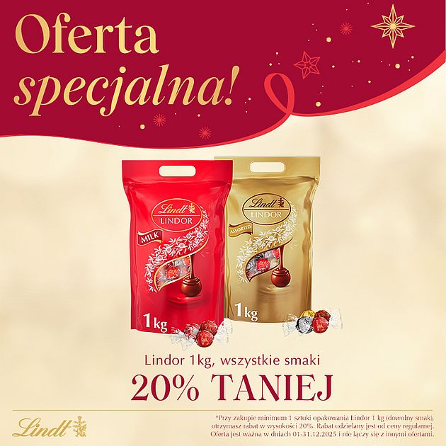 Czekoladowy sklep LINDT to doskonałe miejsce na odkrywanie niezwykłego smaku czekolad LINDT. W salonie firmowym LINDT znaleźć można szeroki wybór najbardziej wyszukanych specjałów przygotowanych z pasją przez Maîtres Chocolatiers LINDT. Odkryjesz tu bogactwo czekolad LINDT, poznasz swoje ulubione smaki oraz znajdziesz oferty specjalne i promocje, a także przepięknie zapakowane prezenty na każdą okazję. Każda wizyta w LINDT stanowi niezapomniane przeżycie.