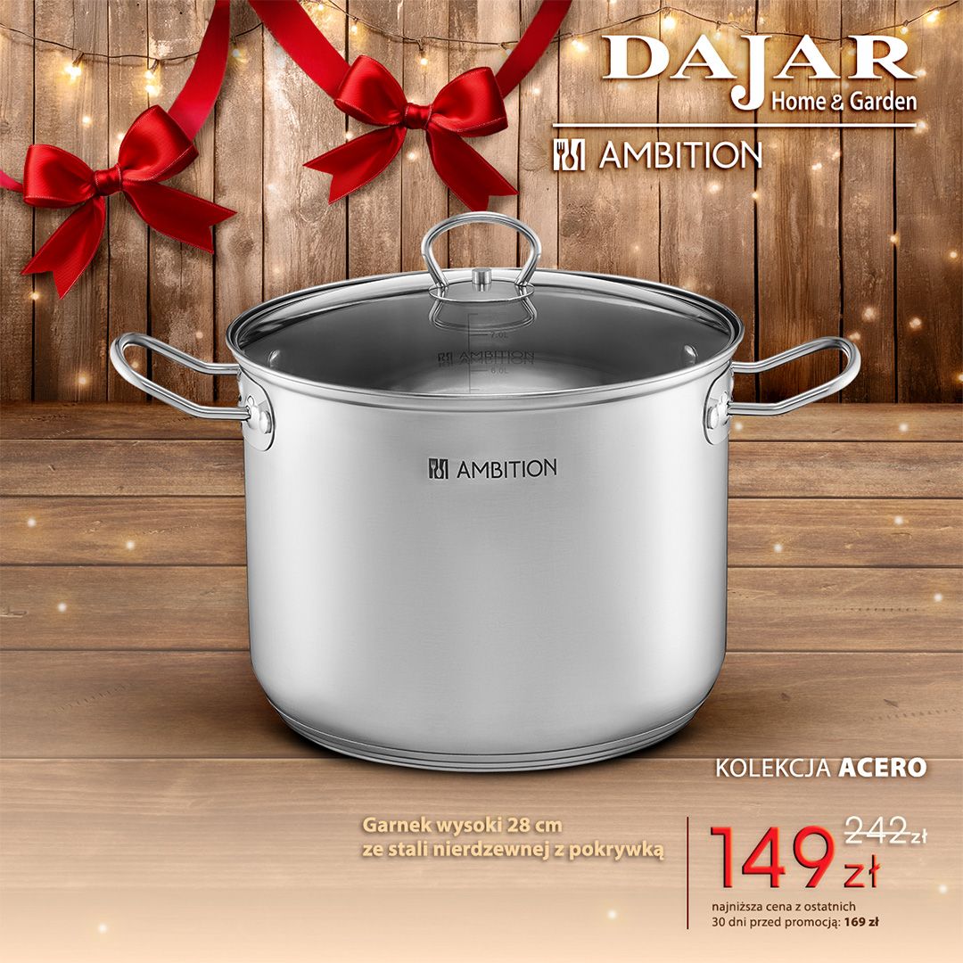 Garnek wysoki 28cm ze stali nierdzewnej z pokrywką