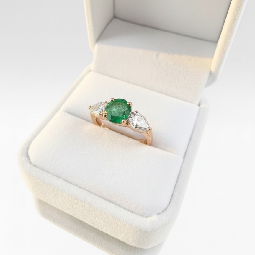 Pierścionek z brylantami i szmaragdem