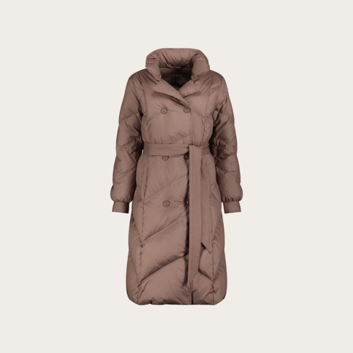 Puchowy brązowo-szary płaszcz damski